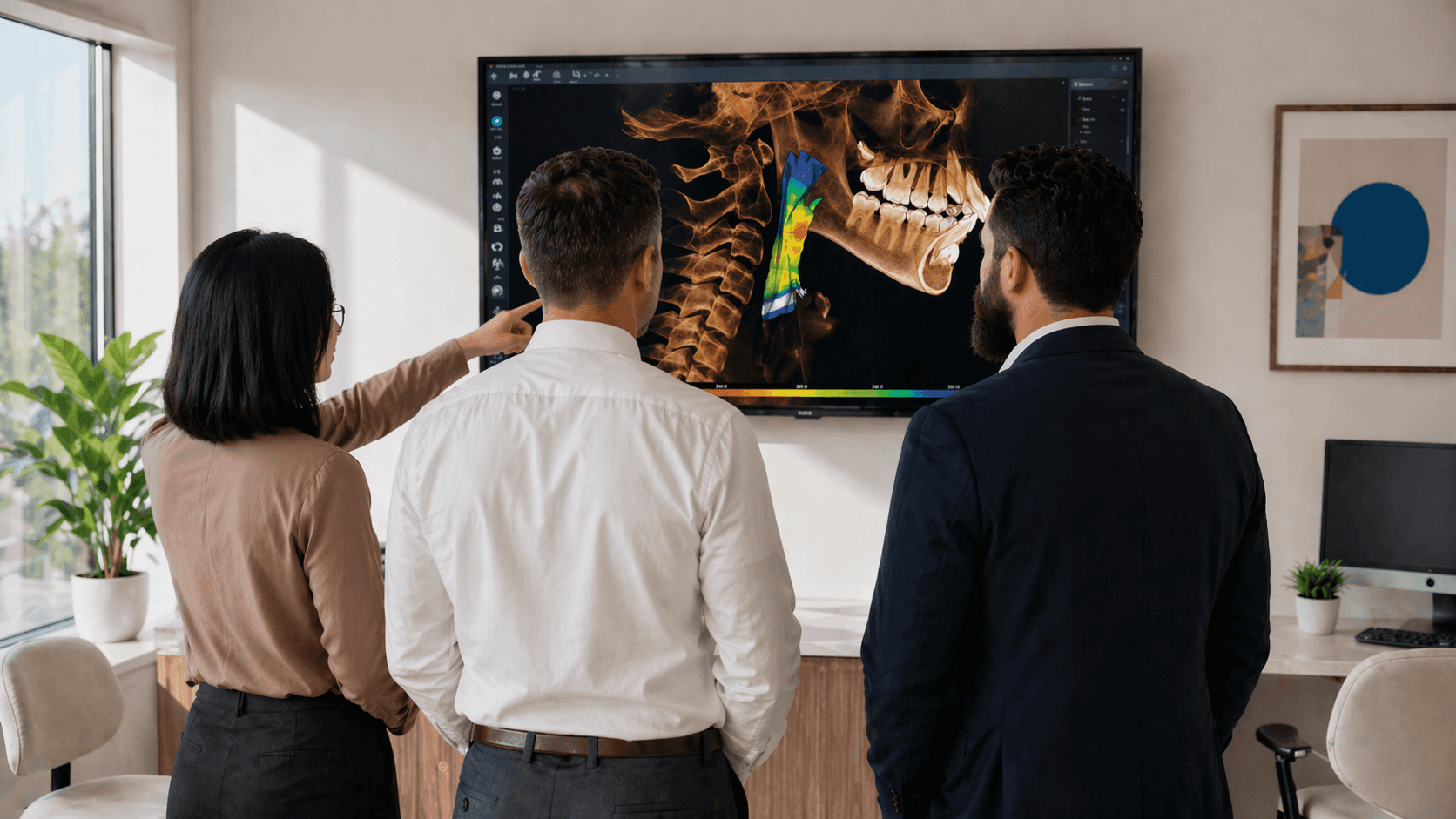 Four specialists. One patient. A diagnostic intake where findings are shared across disciplines before the first treatment decision is made.